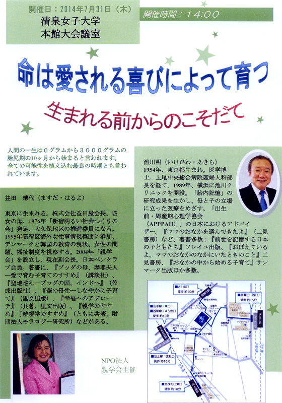 〈プロフィール〉親学会理事長。株式会社益田屋会長、日本ペンクラブ会員、胎児・乳幼児期の関わりを通して人間形成の中枢を成す心と体のバランスの重要性を親達に訴えている。韓国、中国、北欧、ネパールの女性事情や教育現場を視察し、女性の新しい生き方を提言。【著作】「親学のすすめ」(共著・モラロジー研究所)、「親学の教科書」(共著、PHP研究所)「聖地巡礼」(佼成出版社)、「ブッダの母。摩耶夫人」(講談社)「東京新宿商家の子育て歳時記」(講談社)など。